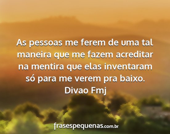 As pessoas me ferem de uma tal maneira que me fazem acreditar na mentira que elas inventaram só para me verem pra baixo.Divao Fmj
