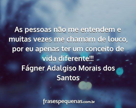 As pessoas não me entendem e muitas vezes me chamam de louco, por eu apenas ter um conceito de vida diferente!!!Fágner Adalgiso Morais dos Santos