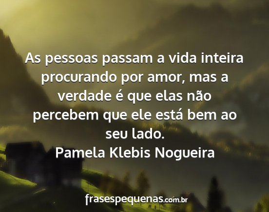 As pessoas passam a vida inteira procurando por amor, mas a verdade é que elas não percebem que ele está bem ao seu lado.Pamela Klebis Nogueira
