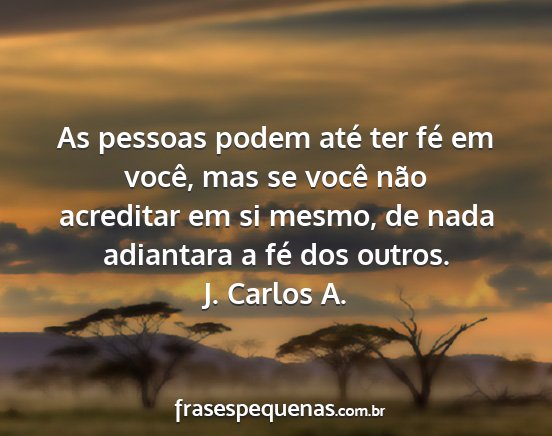 As pessoas podem até ter fé em você, mas se você não acreditar em si mesmo, de nada adiantara a fé dos outros.J. Carlos A.