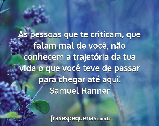 As pessoas que te criticam, que falam mal de você, não conhecem a trajetória da tua vida o que você teve de passar para chegar até aqui!Samuel Ranner