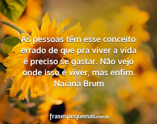 As pessoas têm esse conceito errado de que pra viver a vida é preciso se gastar. Não vejo onde isso é viver, mas enfim.Naiana Brum
