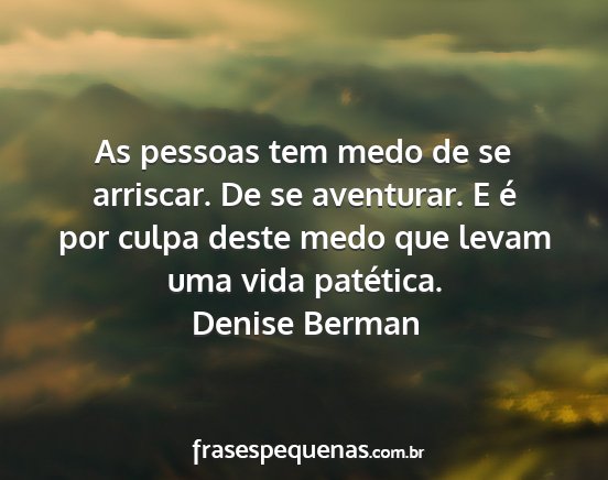 As pessoas tem medo de se arriscar. De se aventurar. E é por culpa deste medo que levam uma vida patética.Denise Berman