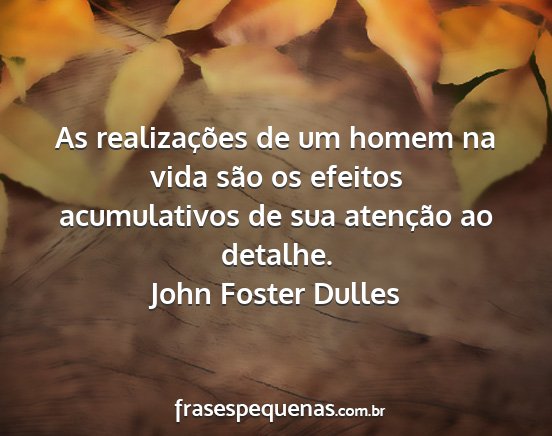 As realizações de um homem na vida são os efeitos acumulativos de sua atenção ao detalhe.John Foster Dulles