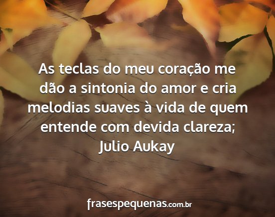 As teclas do meu coração me dão a sintonia do amor e cria melodias suaves à vida de quem entende com devida clareza;Julio Aukay
