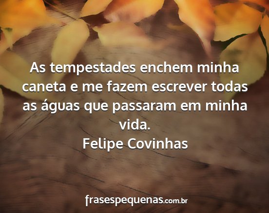 As tempestades enchem minha caneta e me fazem escrever todas as águas que passaram em minha vida.Felipe Covinhas