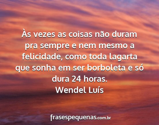 Às vezes as coisas não duram pra sempre e nem mesmo a felicidade, como toda lagarta que sonha em ser borboleta e só dura 24 horas.Wendel Luís