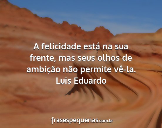 A felicidade está na sua frente, mas seus olhos de ambição não permite vê-la.