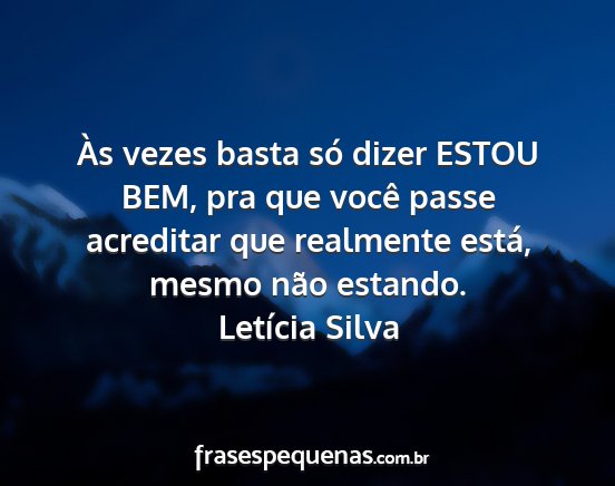 Às vezes basta só dizer ESTOU BEM, pra que você passe acreditar que realmente está, mesmo não estando.Letícia Silva