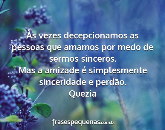 Mas a amizade é simplesmente sinceridade e perdão.Quezia