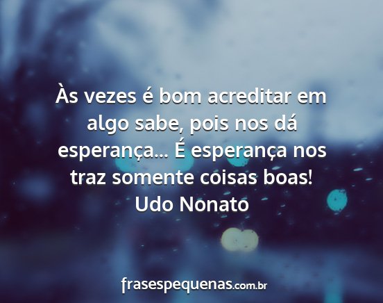 Às vezes é bom acreditar em algo sabe, pois nos dá esperança... É esperança nos traz somente coisas boas!Udo Nonato