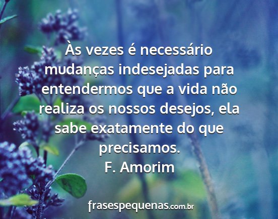 Às vezes é necessário mudanças indesejadas para entendermos que a vida não realiza os nossos desejos, ela sabe exatamente do que precisamos.F. Amorim
