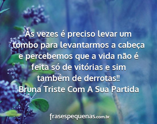 Às vezes é preciso levar um tombo para levantarmos a cabeça e percebemos que a vida não é feita só de vitórias e sim também de derrotas!!Bruna Triste Com A Sua Partida