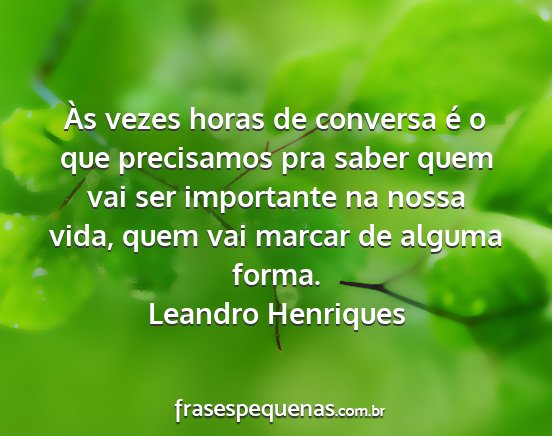 Às vezes horas de conversa é o que precisamos pra saber quem vai ser importante na nossa vida, quem vai marcar de alguma forma.Leandro Henriques