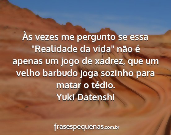Às vezes me pergunto se essa "Realidade da vida" não é apenas um jogo de xadrez, que um velho barbudo joga sozinho para matar o tédio.Yuki Datenshi