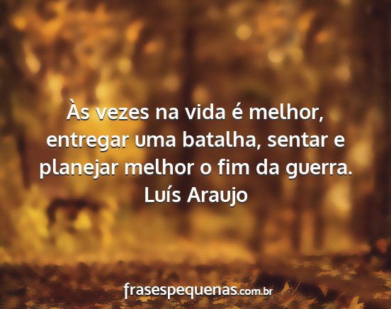 Às vezes na vida é melhor, entregar uma batalha, sentar e planejar melhor o fim da guerra.Luís Araujo