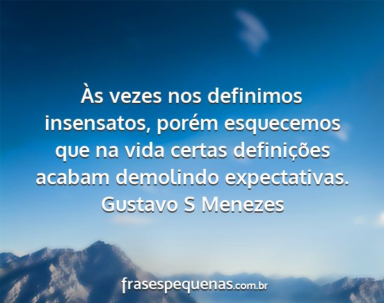 Às vezes nos definimos insensatos, porém esquecemos que na vida certas definições acabam demolindo expectativas.Gustavo S Menezes