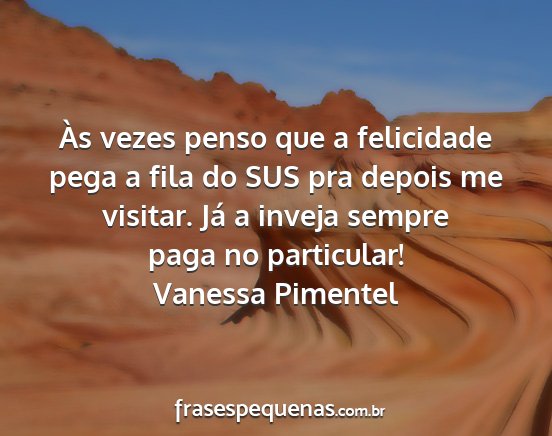 Às vezes penso que a felicidade pega a fila do SUS pra depois me visitar. Já a inveja sempre paga no particular!Vanessa Pimentel