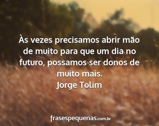 Às vezes precisamos abrir mão de muito para que um dia no futuro, possamos ser donos de muito mais.Jorge Tolim