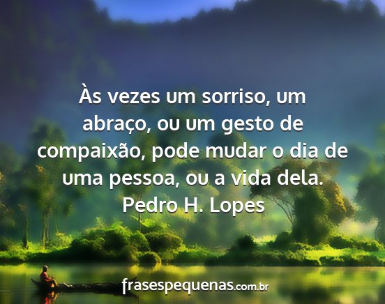 Às vezes um sorriso, um abraço, ou um gesto de compaixão, pode mudar o dia de uma pessoa, ou a vida dela.Pedro H. Lopes