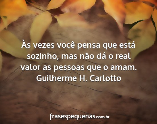 Às vezes você pensa que está sozinho, mas não dá o real valor as pessoas que o amam.Guilherme H. Carlotto