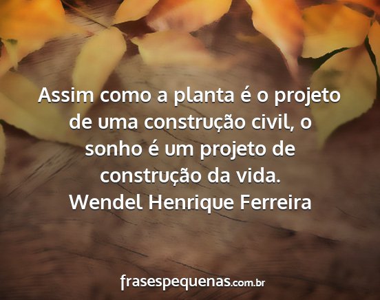 Assim como a planta é o projeto de uma construção civil, o sonho é um projeto de construção da vida.Wendel Henrique Ferreira