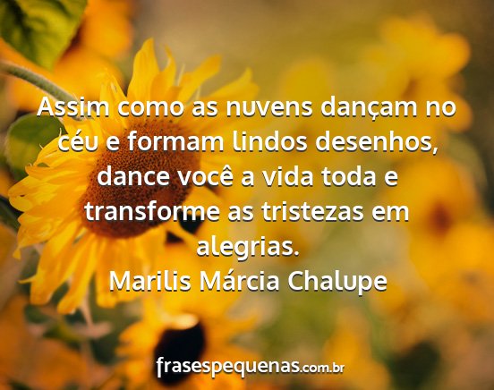 Assim como as nuvens dançam no céu e formam lindos desenhos, dance você a vida toda e transforme as tristezas em alegrias.Marilis Márcia Chalupe