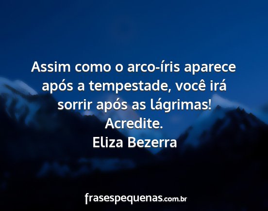 Assim como o arco-íris aparece após a tempestade, você irá sorrir após as lágrimas! Acredite.Eliza Bezerra