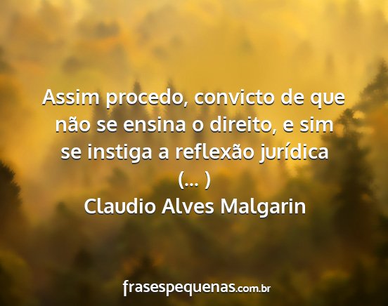Assim procedo, convicto de que não se ensina o direito, e sim se instiga a reflexão jurídica (... )Claudio Alves Malgarin