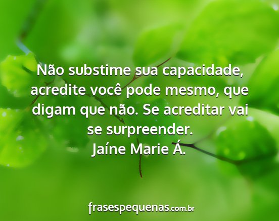 Não substime sua capacidade, acredite você pode mesmo, que digam que não. Se acreditar vai se surpreender.Jaíne Marie Á.