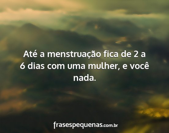 Até a menstruação fica de 2 a 6 dias com uma mulher, e você nada.
