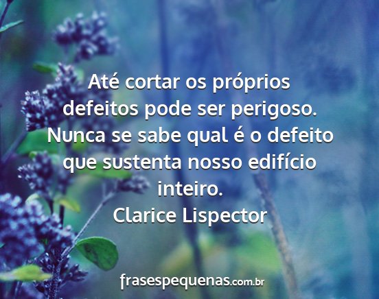 Até cortar os próprios defeitos pode ser perigoso. Nunca se sabe qual é o defeito que sustenta nosso edifício inteiro.Clarice Lispector