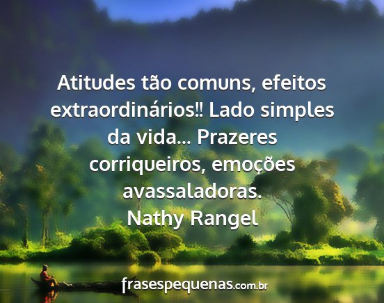 Atitudes tão comuns, efeitos extraordinários!! Lado simples da vida... Prazeres corriqueiros, emoções avassaladoras.Nathy Rangel