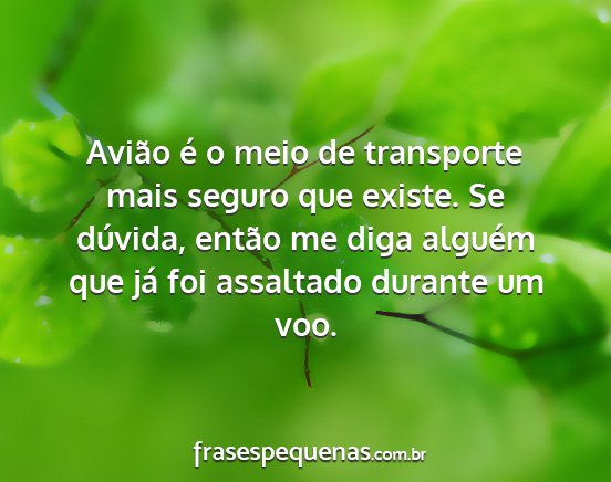 Avião é o meio de transporte mais seguro que existe. Se dúvida, então me diga alguém que já foi assaltado durante um voo.
