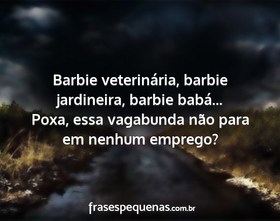 Barbie veterinária, barbie jardineira, barbie babá... Poxa, essa vagabunda não para em nenhum emprego?
