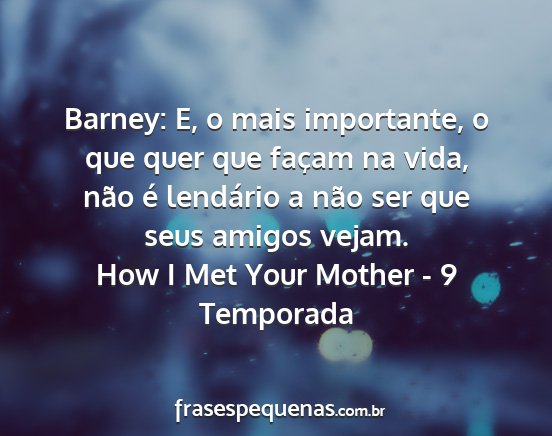 Barney: E, o mais importante, o que quer que façam na vida, não é lendário a não ser que seus amigos vejam.How I Met Your Mother - 9 Temporada