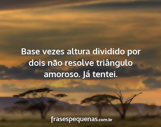 Base vezes altura dividido por dois não resolve triângulo amoroso. Já tentei.