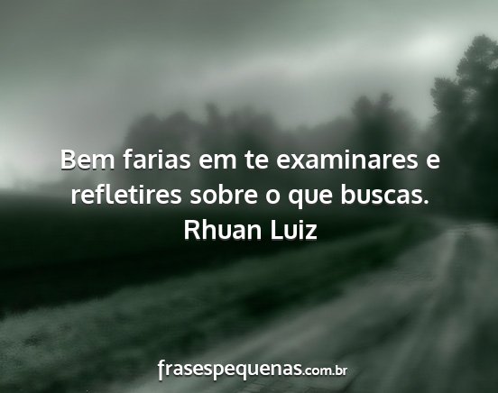 Bem farias em te examinares e refletires sobre o que buscas.