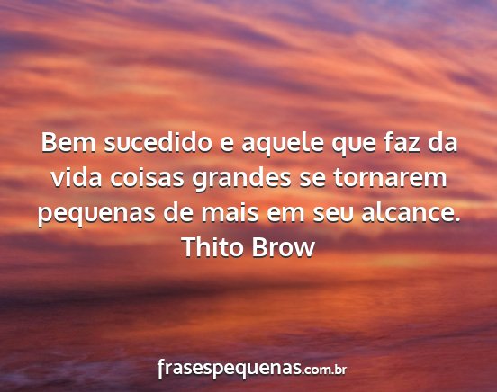 Bem sucedido e aquele que faz da vida coisas grandes se tornarem pequenas de mais em seu alcance.Thito Brow