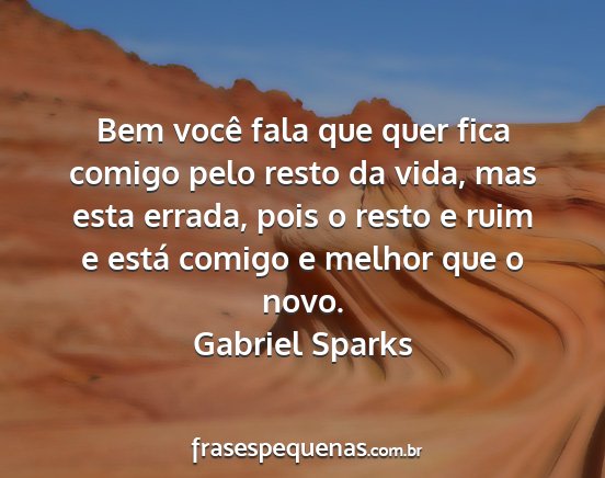 Bem você fala que quer fica comigo pelo resto da vida, mas esta errada, pois o resto e ruim e está comigo e melhor que o novo.Gabriel Sparks