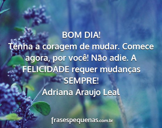 Tenha a coragem de mudar. Comece agora, por você! Não adie. A FELICIDADE requer mudanças SEMPRE!Adriana Araujo Leal