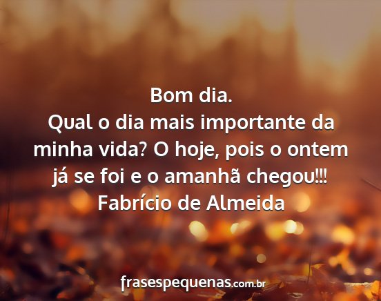 Qual o dia mais importante da minha vida? O hoje, pois o ontem já se foi e o amanhã chegou!!!Fabrício de Almeida