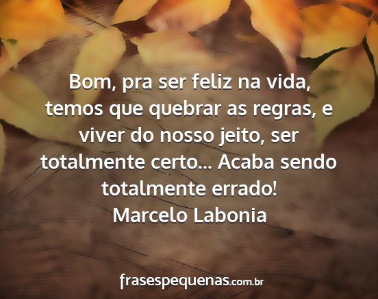 Bom, pra ser feliz na vida, temos que quebrar as regras, e viver do nosso jeito, ser totalmente certo... Acaba sendo totalmente errado!Marcelo Labonia