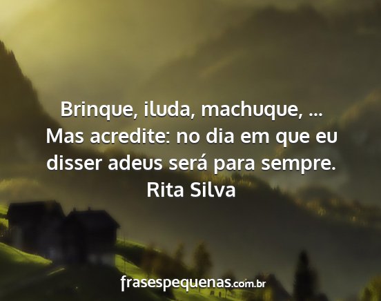 Brinque, iluda, machuque, ... Mas acredite: no dia em que eu disser adeus será para sempre.Rita Silva