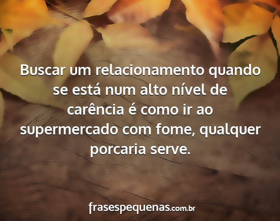 Buscar um relacionamento quando se está num alto nível de carência é como ir ao supermercado com fome, qualquer porcaria serve.