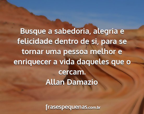 Busque a sabedoria, alegria e felicidade dentro de si, para se tornar uma pessoa melhor e enriquecer a vida daqueles que o cercam.Allan Damazio