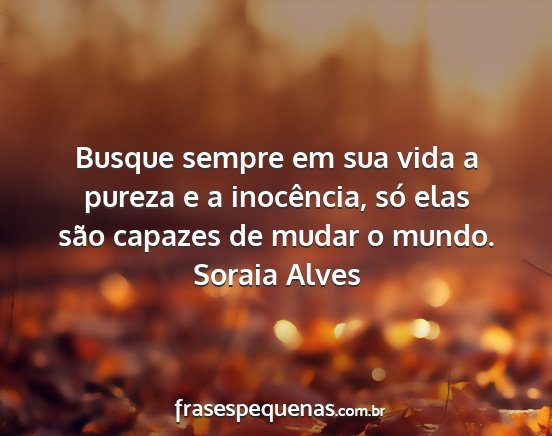 Busque sempre em sua vida a pureza e a inocência, só elas são capazes de mudar o mundo.
