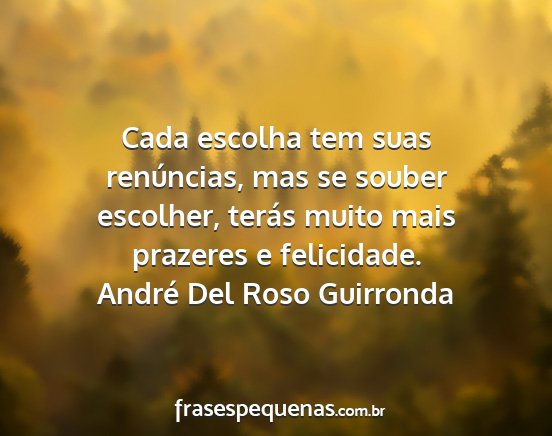 Cada escolha tem suas renúncias, mas se souber escolher, terás muito mais prazeres e felicidade.André Del Roso Guirronda