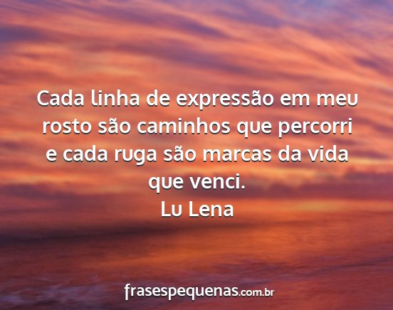 Cada linha de expressão em meu rosto são caminhos que percorri e cada ruga são marcas da vida que venci.Lu Lena