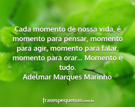 Cada momento de nossa vida, é momento para pensar, momento para agir, momento para falar, momento para orar... Momento é tudo.Adelmar Marques Marinho